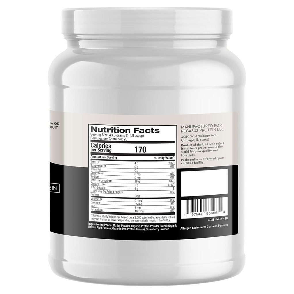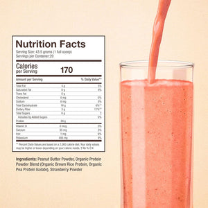INGREDIENTS: PEANUT BUTTER POWDER, ORGANIC PROTEIN POWDER BLEND (ORGANIC BROWN RICE PROTEIN, ORGANIC PEA PROTEIN ISOLATE), STRAWBERRY POWDER.